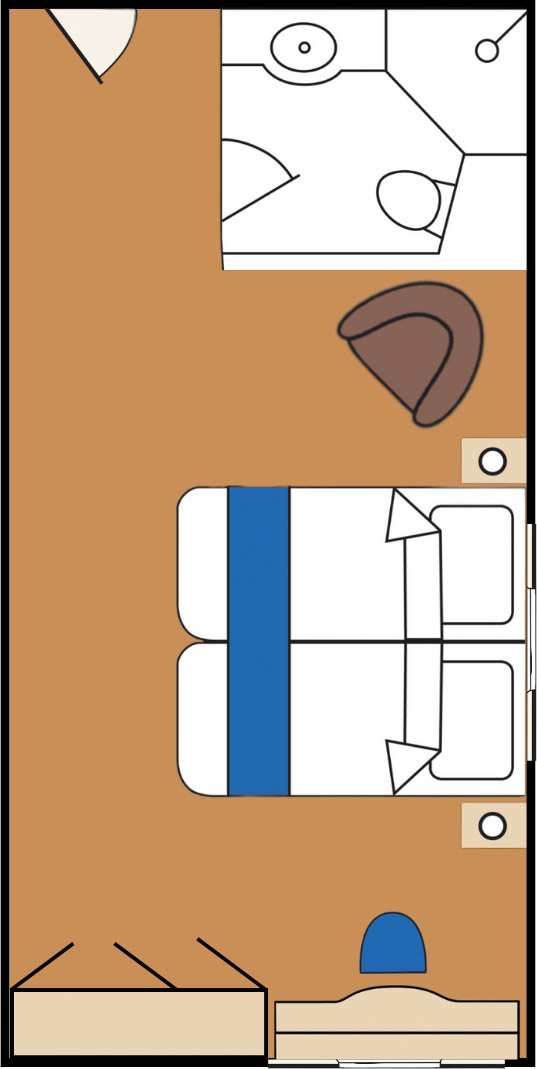 The Superior Cabins located on Decks “A” and “B” measure approximately 14 - 16 square metres (150 sqft)* and feature a desk, a window, two single beds and an en-suite bathroom. Superior Cabins on deck B feature a slightly larger size and a sofa bed and porthole (instead of window).