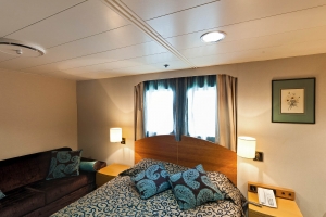 Approximately 320 sq. ft. (30 sq. m), a Junior Suite on Decks 5 and 7 features a picture window, one double bed and private bath. Cabin 7002 has a bathtub; other Junior Suites have showers.