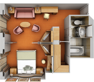Please note: Suite information refer to the Silver Wind post the 2020 extensive dry dock, and will thus only apply to any voyages starting from November 2020. Suite diagrams shown are for illustration purposes only. Final features, materials, finishes and layout may be different than shown.
