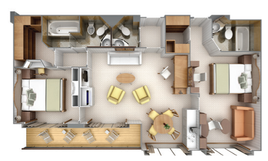 Stately. Commanding and majestic. Perfect for entertaining. The Royal suite lives up to its name. Enough living space to roam. The pinnacle of good living. Available as a one-bedroom configuration or as two bedroom by adjoining with a Veranda Suite.