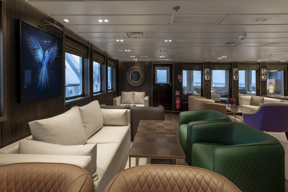 Perfectly suited for adventurous voyages, her ice-strengthened hull, deep draft, and powerful engines make her ideal for navigating the remote and rugged coastlines of Antarctica, the South Atlantic, and beyond. Her open decks, generous observation lounges, and expedition-ready features provide an ideal platform for wildlife encounters, landings, and immersive exploration.