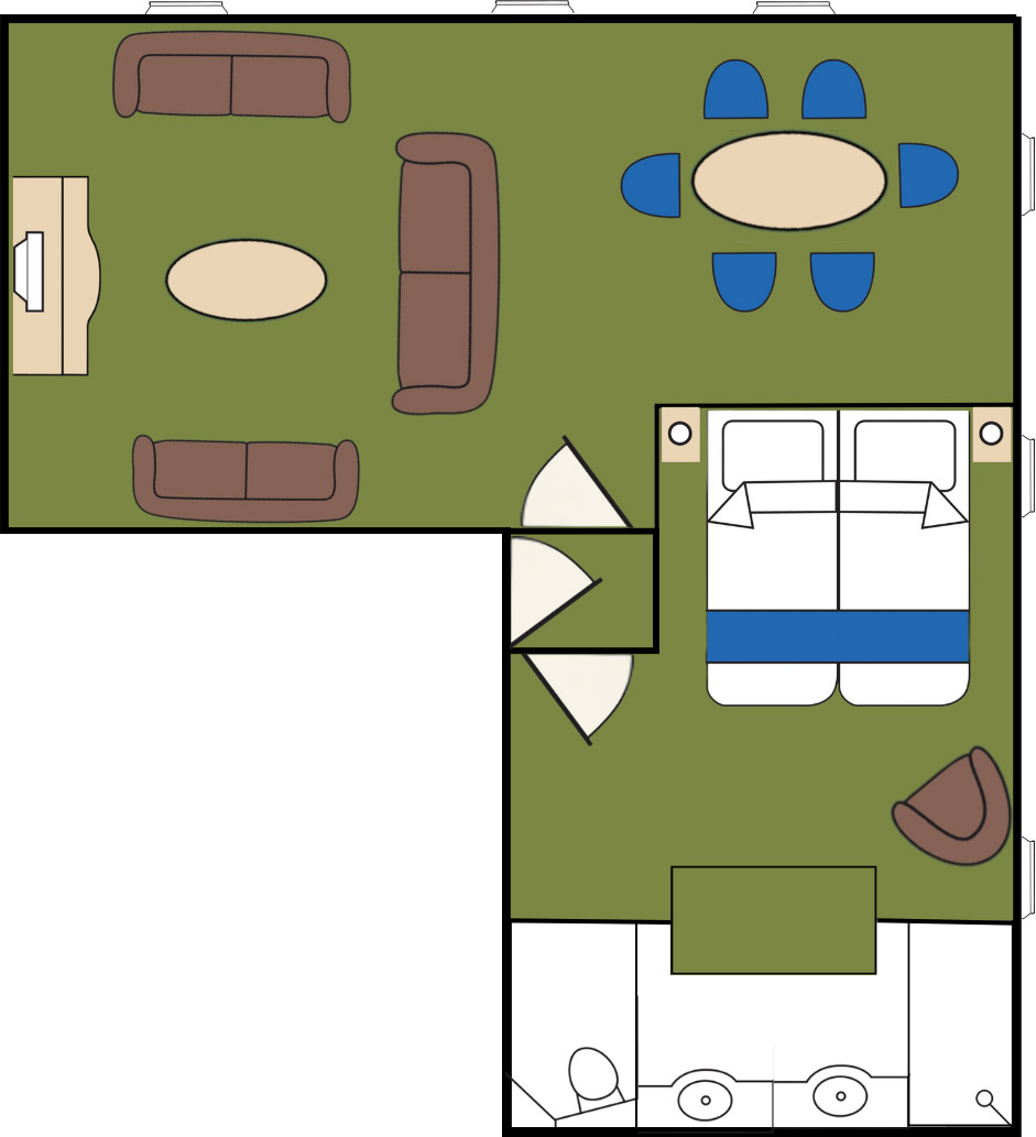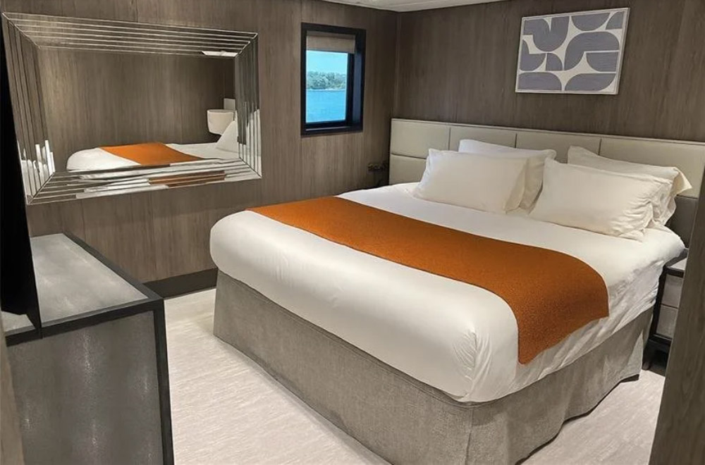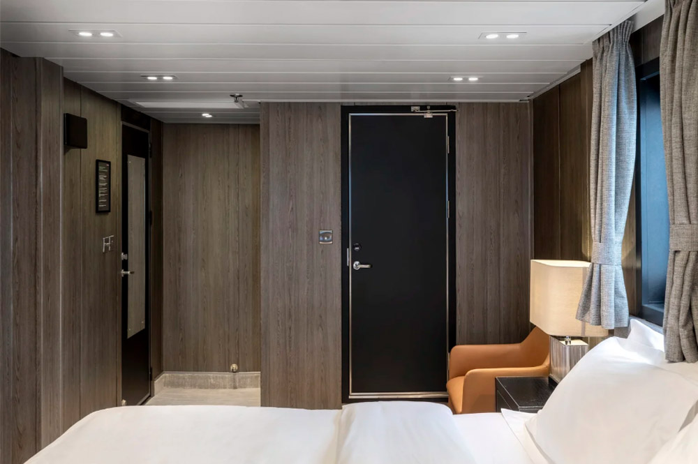 The spacious Owner's Suites located on the Boat Deck measure approximately 40 square metres (430 sqft)* and feature a seating area, a meeting area, en-suite bathroom, walk in closet and one double (King-sized) bed.